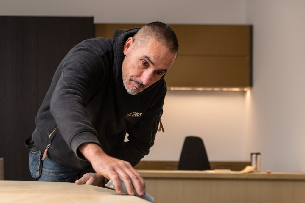 We bekijken houtsoorten, lakwerk, grepen en verlichting.